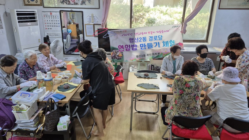 행신2동 경로당 연잎밥 만들기 체험 최고관리자 0 608 0 09.26 15:32 행신2동 주민자치회는 9월 10~22일 기간 동 전역 19개 경로당을 방문하여 연잎밥 만들기 체험 활동을 하였습니다. 0