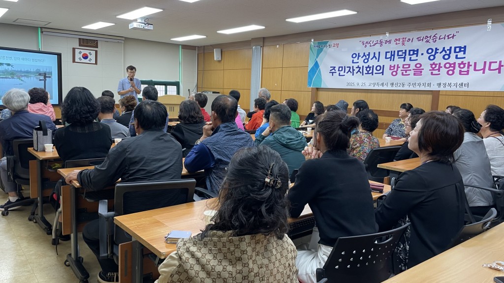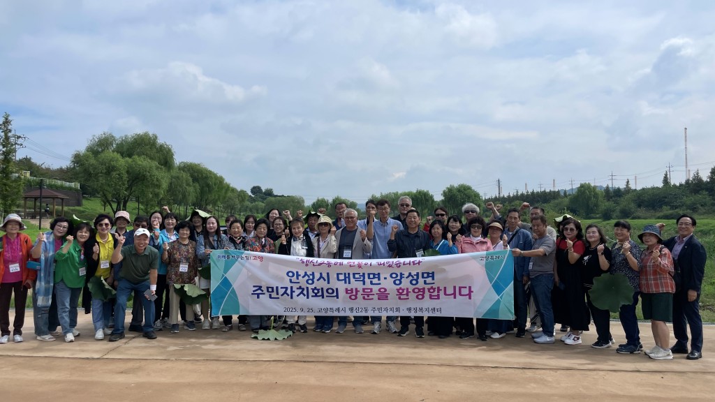 경기도 안성시 대덕면, 양성면 주민자치회 방문 최고관리자 0 642 1 09.26 15:41 9월 25일 경기도 안성시 대덕면, 양성면 주민자치회 50여분이 행신2동 주민자치회를 견학 왔습니다. 행신2동 주민자치회 활동을 소개하고 연꽃밭 현장을 탐방하였습니다. 1