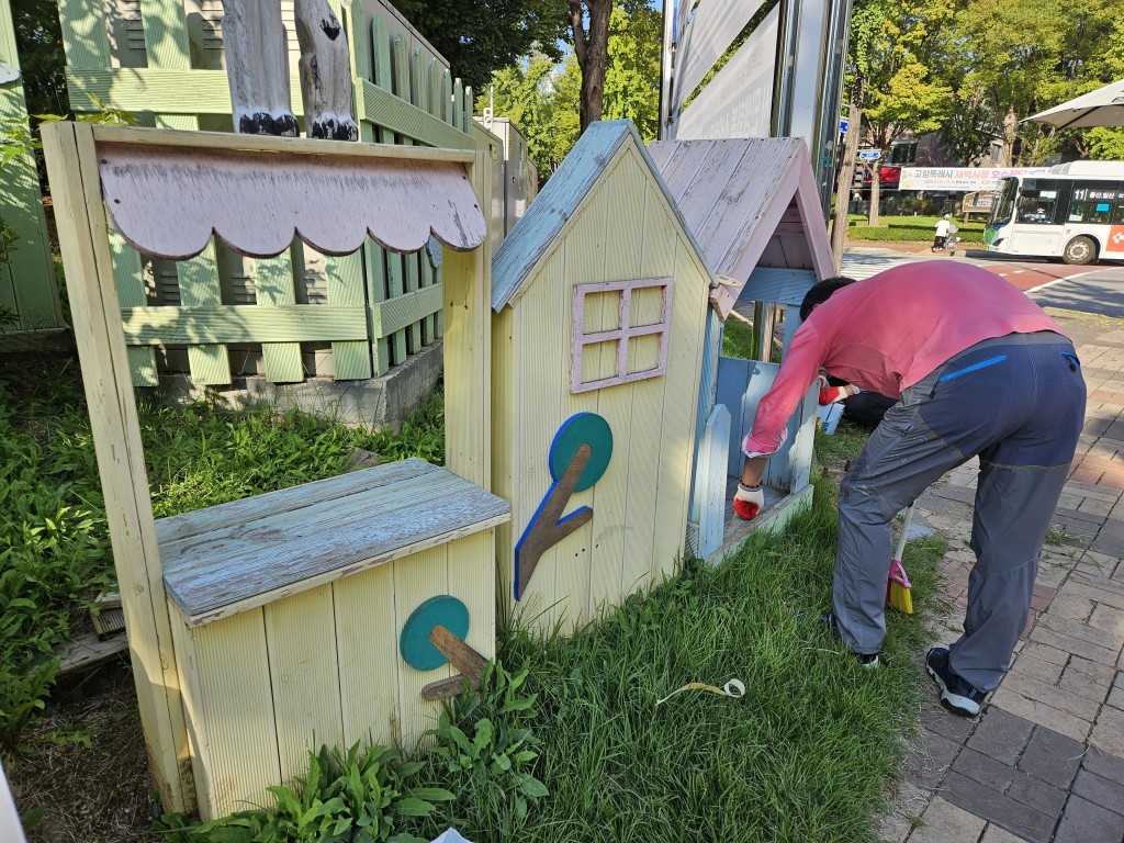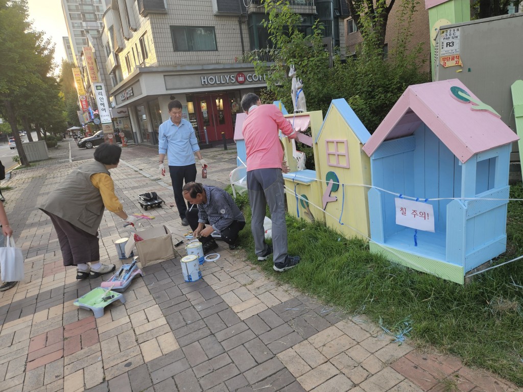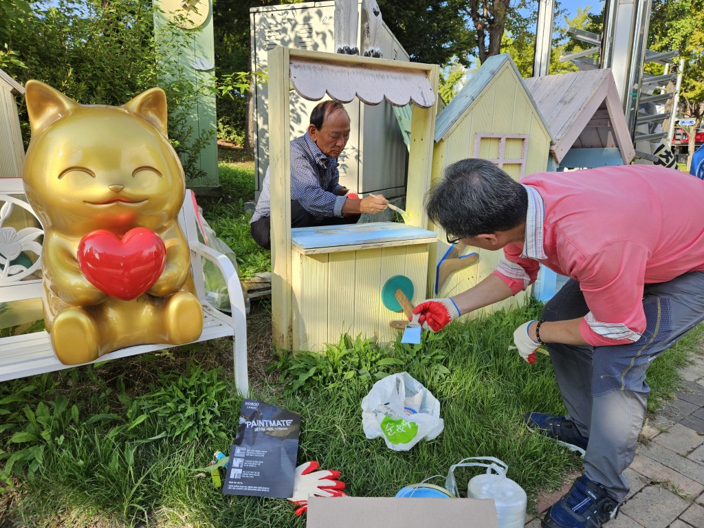 고양이 캐릭터(금손이) 주변 조형물 페인트칠 행신2나루 0 519 0 09.26 15:55 고양이 캐릭터(금손이) 주변 조형물 페인트칠 지난 9월 25일 오후에 오건호 회장님을 비롯해 이옥석 생태분과 총무님, 이성조 위원님, 윤재영 통장님, 표정남 방위협의회 회장님 등이 도와주셔서 고양이 캐릭터(금손이) 주변 조형물 페인트칠을 했습니다.2년 전 조형물 설치하고 처음 페인트칠 작업을 하게 되었습니다.아주 깔끔하고 예쁘게 칠해주신 분들께 감사드립니다. 0